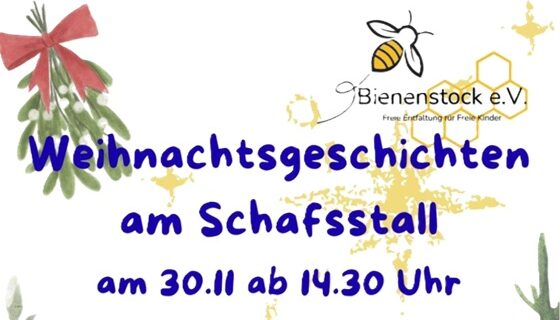 Weihnachtsgeschichten im Schafstall Der Bienenstock e.V. lädt Euch am 30.11.2025 um 14:30 Uhr herzlich zu einem gemütlichen Beisammensein am Lagerfeuer ein. Freut Euch auf Stockbrot, Kinderpunsch und Glühwein. Außerdem erwarten …